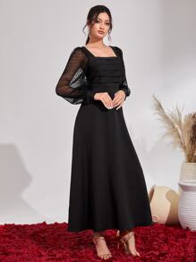 Shein Square Neck Contrast Mesh Bishop Sleeve Dress Shein Eur